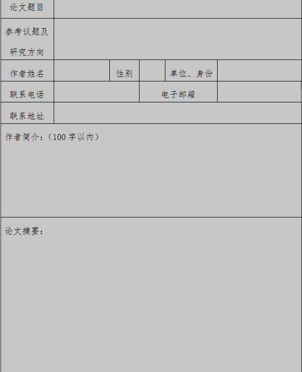 二、本表的文件命名方式为“投稿信息表--论文题目--作者姓名”。