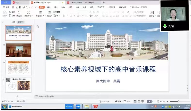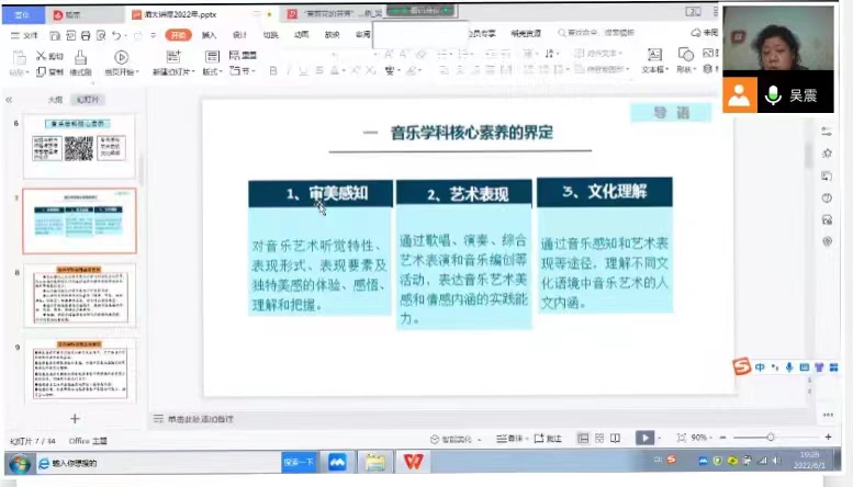 为进一步推动学院师范教育高质量发展,提升音乐学专业师范生教育教学实践能力,6月1日晚七点,44118太阳成城集团线上举办“核心素养视域下的高中音乐课程”专题讲座,邀请南开大学附属中学高中音乐教师吴震担任主讲人。教学副院长陈静、音乐学(师范)专业负责人刘倩、音乐学系教师代表、音乐学(师范)专业全体学生共计175人参加讲座。讲座由刘倩老师主持。