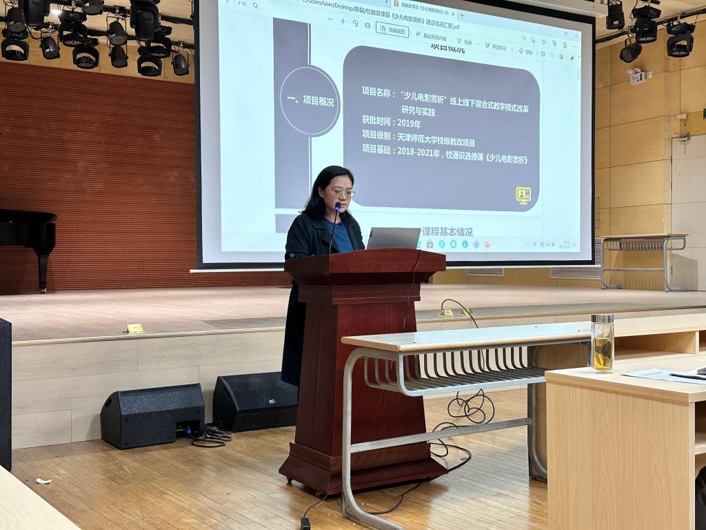 戏文系王楠老师承担学校通识选修课《少儿电影赏析》的授课任务,她和老师们分享了线上线下混合式教学模式改革的研究与实践。通过讲解线上平台课程建设方式、线下线下混合式教学实施情况、课程评价与成效、课程特色与创新等方面,充分展现了《少儿电影赏析》课程的教学改革成效。