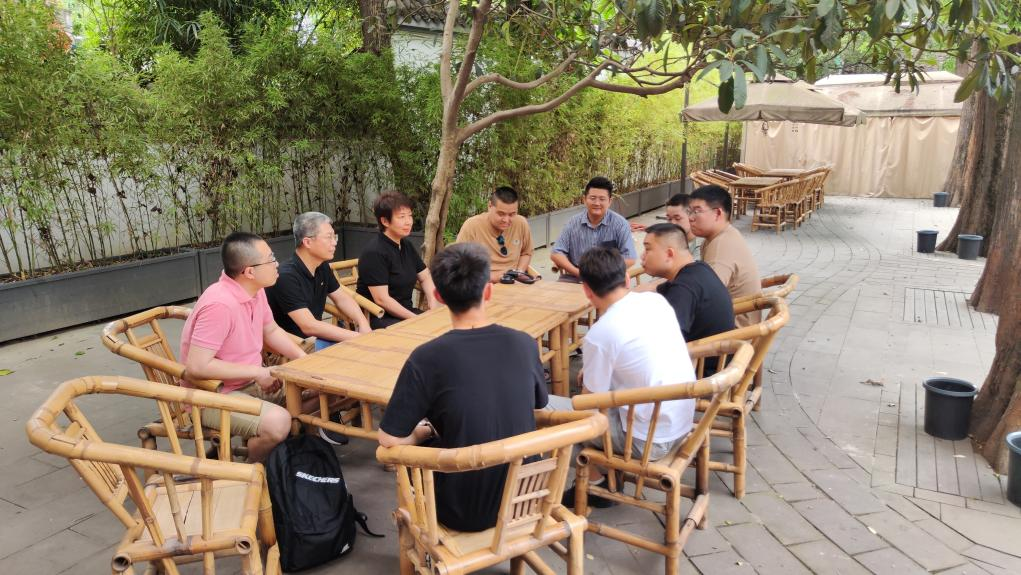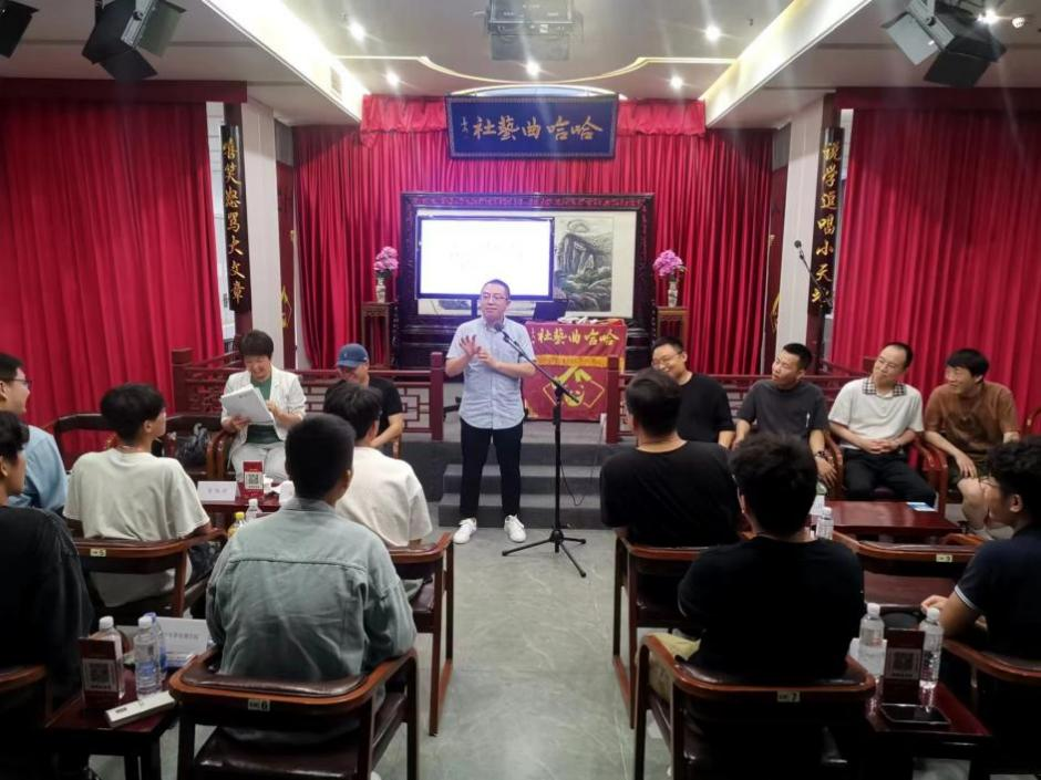 座谈前,征集组与成都曲艺界人士进行了交流与沟通。双方就四川高校大学生相声传承、“马季杯”展演举办的背景与发展等问题交换了意见。