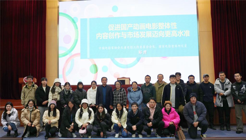 此次天津之行,郑虎会长还为师生作了题为“促进国产动画电影整体性内容创作与市场发展迈向更高水准”学术讲座。讲座由院长杨爱君主持,戏剧与影视文学专业200余名师生共同参与活动。讲座中,郑虎针对影视行业票房发展、国产动画电影的票房大观、现代动漫产业链的构成等领域相关知识进行了交流与探讨。郑虎表示,为了促进国产动画电影整体性内容创作与市场发展迈向更高水准,应当做好以下三个层面:首先应当继承创新,做好中国动画学派的继承与创新发展;其次要学习借鉴,做优孵化积淀优质IP的现代动画企业;最后要做好整合营销,做强直面市场创建效益的动漫产业链。针对当时代动漫产业链的发展,郑虎呼吁,重点应当放在培养国产动画电影的专业人才上,为中国动漫产业链的长足发展提供源源不断的人才支持。