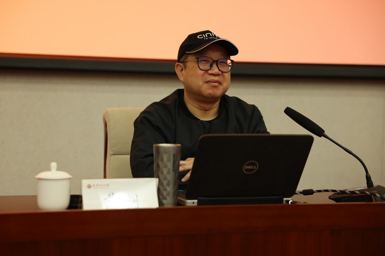 张宗伟教授以“中国电影意象论”为题,结合自己的学术成果,从“中国电影意象论的提出”“中国电影周易美学与中国特色电影美学的建构”“魏书均的焦虑三部曲”“建构新时代中国电影意象共同体”四个部分为大家带来精彩讲座。他认为“虚实失调”“阴盛阳衰”是当下中国电影的两大美学困境,是电影本体论焦虑在电影生产实践中的反映,主要表现为现实题材萎缩和“妖魔鬼怪”题材盛行。“妖魔鬼怪”的阴风遮蔽了“刚健笃实”的时代光辉,现实题材“小”趣味流行,轻喜剧和滑稽闹剧野蛮生长,麻木了青年一代对“朝气”和“正气”之美的向往。对于中国电影周易美学与中国特色电影美学的建构,张宗伟教授从中国传统文化原典《周易》出发,提炼出“生生”“意象”“阴阳”三个中国美学话语,结合贾樟柯等导演的作品,向同学们论述了中国电影美学的本质、范畴和风格。