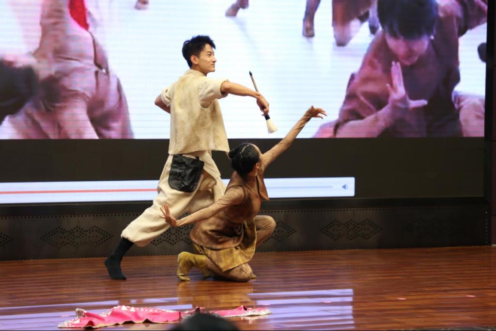 在宣讲中,马晓琳以《塑泥成韵舞动传承——让非遗在青春跳跃中生生不息》为题,将天津非遗文化瑰宝——泥人张与自身在编舞领域的造诣巧妙结合,深入展现了国家级非物质文化遗产“泥人张彩塑”的独特文化魅力。马晓琳充分挖掘了天津地域文化的丰富特色,并以舞蹈这一生动形象的艺术形式,精彩诠释了泥塑核心工序的精细与美妙,包括选泥、塑形、烧制、打磨、彩绘等环节。她构建了“泥土化人——人塑泥土——人泥共生”的叙事主线,以非遗文化的现代表达,展现了工匠精神的薪火相传与多民族文化交融的时代内涵,让现场观众在领略传统工艺之美的同时,也深刻感受到那份执着与坚守,以及不同文化相互碰撞、融合所绽放的璀璨光芒。马晓琳用质朴无华的语言、饱含深情的表达、条理清晰的逻辑,赢得了评委和现场观众的一致好评。师生共同参与编排、演出,在教学相长的同时,也让中华优秀传统文化之“美”浸润人心。