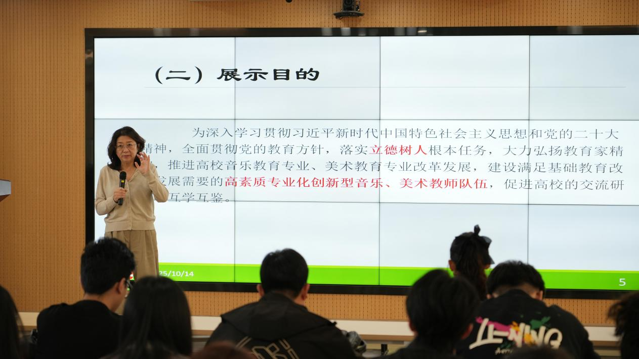 讲座伊始,尹爱青围绕全国普通高等学校音乐教育专业本科学生基本功展示赛制沿革展开讲解。她系统梳理了该赛事从创办初期到如今的发展历程,详细分析了不同阶段赛制的调整背景与核心变化,为高校音乐教育专业教学改革提供了重要导向。