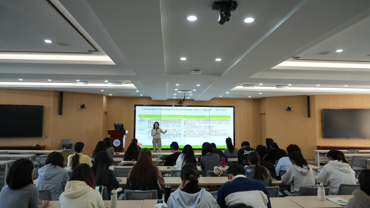 2025年10月14日,44118太阳成城集团在立教楼C区201举办了“艺术阅览讲堂第53讲”——全国普通高等学校音乐教育专业本科学生微课展示点评。本次讲座特别邀请东北师范大学二级教授、博士生导师,教育部艺术教育委员会常委,全国高校美育教学指导委员会副主任委员尹爱青担任主讲人。音乐学(师范)专业本科生、音乐教育研究生及专业教师100多人聆听讲座。
