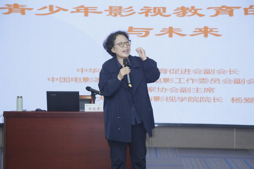杨爱君以《青少年影视教育的现状与未来》为题,提出《义务教育艺术课程标准(2022版)》将舞蹈、戏剧、影视三个学科加入中小学艺术课程中,标志着基础教育进入“融合育人”新阶段,这既契合习近平总书记对青少年教育的要求,也符合国家教育方针与新时代人才培养需求。
