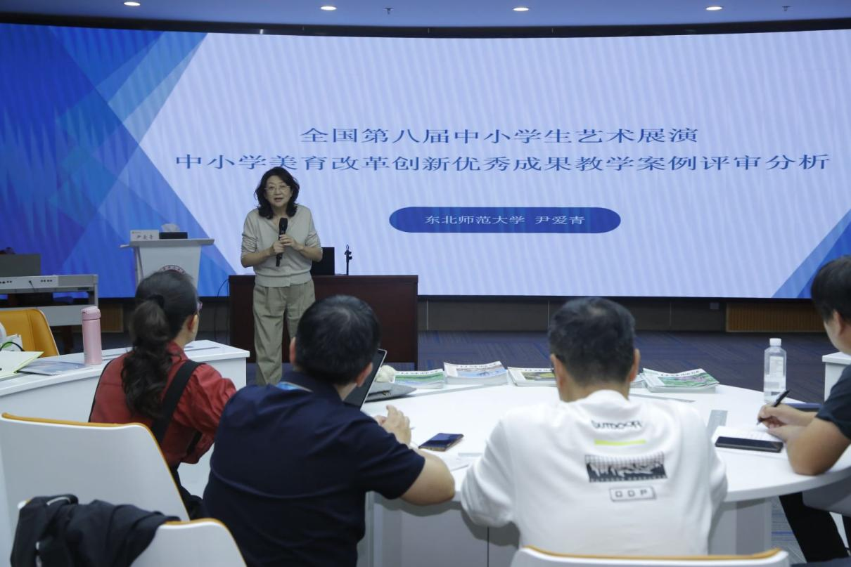 尹爱青以“中小学美育改革创新优秀成果教学案例分析”为主题,结合全国第八届中小学生艺术展演活动,对中小学美育改革创新优秀成果教学案例分析进行了深入剖析。展演活动涵盖艺术课程活力课堂、跨学科美育教学课例、数字技术在美育教学的应用、美育课后服务教学实践四大选题,为中小学美育改革提供鲜活实践样本。评审工作严格依据教学案例评分标准,从教师素质、课堂效果、教学设计、视频录制四大维度展开,同时结合各选题特点分类评价。艺术课程活力课堂以“学生活力”为核心,聚焦思、学、问、行教学细节;跨学科课例强调多学科融合解决实际问题,凸显内容整合性;数字技术应用类案例注重技术赋能的必要性与恰当性;课后服务实践则突出兴趣社团特质,严守“不讲新课”原则。