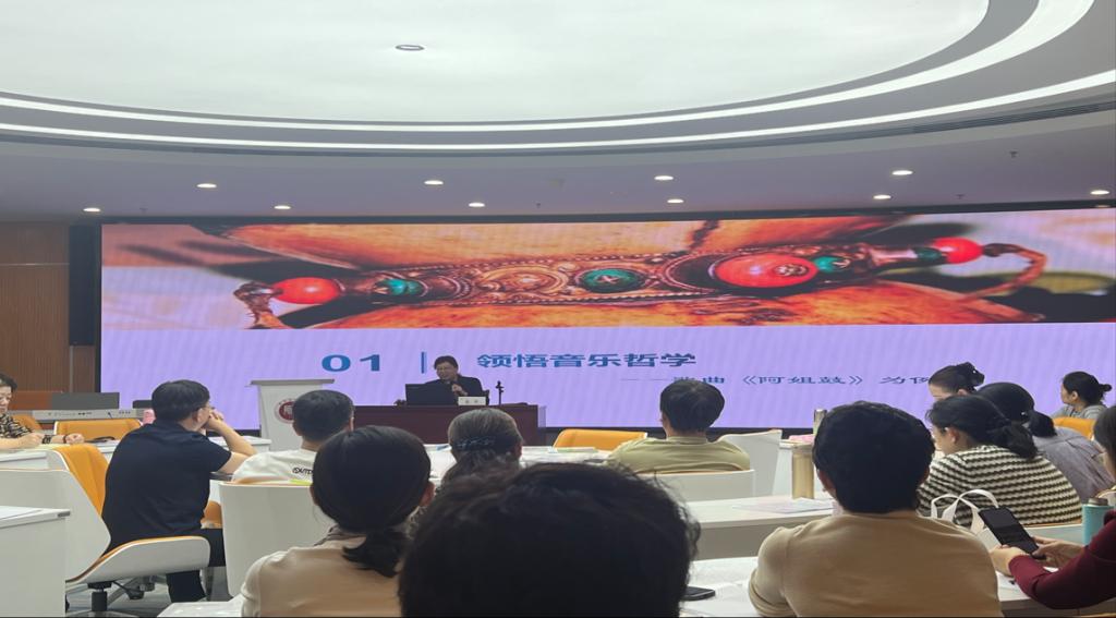 蔡梦以《领悟音乐哲学 研究音乐作品 实施音乐教育》为题,为中小学音乐学科骨干教师构建了"哲学-作品-教学"三位一体的教学创新路径。在理论构建层面,她以音乐哲学为内核,从“自律论”与“他律论”双重视角解析音乐美学观,帮助教师把握音乐中“技术音响、艺术美学、思想哲学”的深层关联,筑牢理论根基。