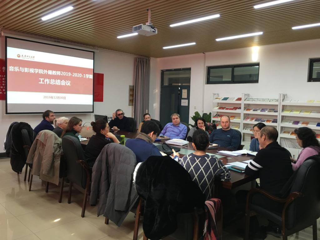 2019年12月30日上午十一点,我院在立教楼B312召开外籍教师2019-2020学年第一学期工作总结会议,旨在了解外籍教师的教学情况,提高我院合作办学项目人才培养水平和办学质量。学院副院长柴鹏程、音乐学系系主任张淑珍、键盘系副系主任周毅、声乐系代理副系主任董雷、管理教师孔燕以及九名外籍教师参加会议。
